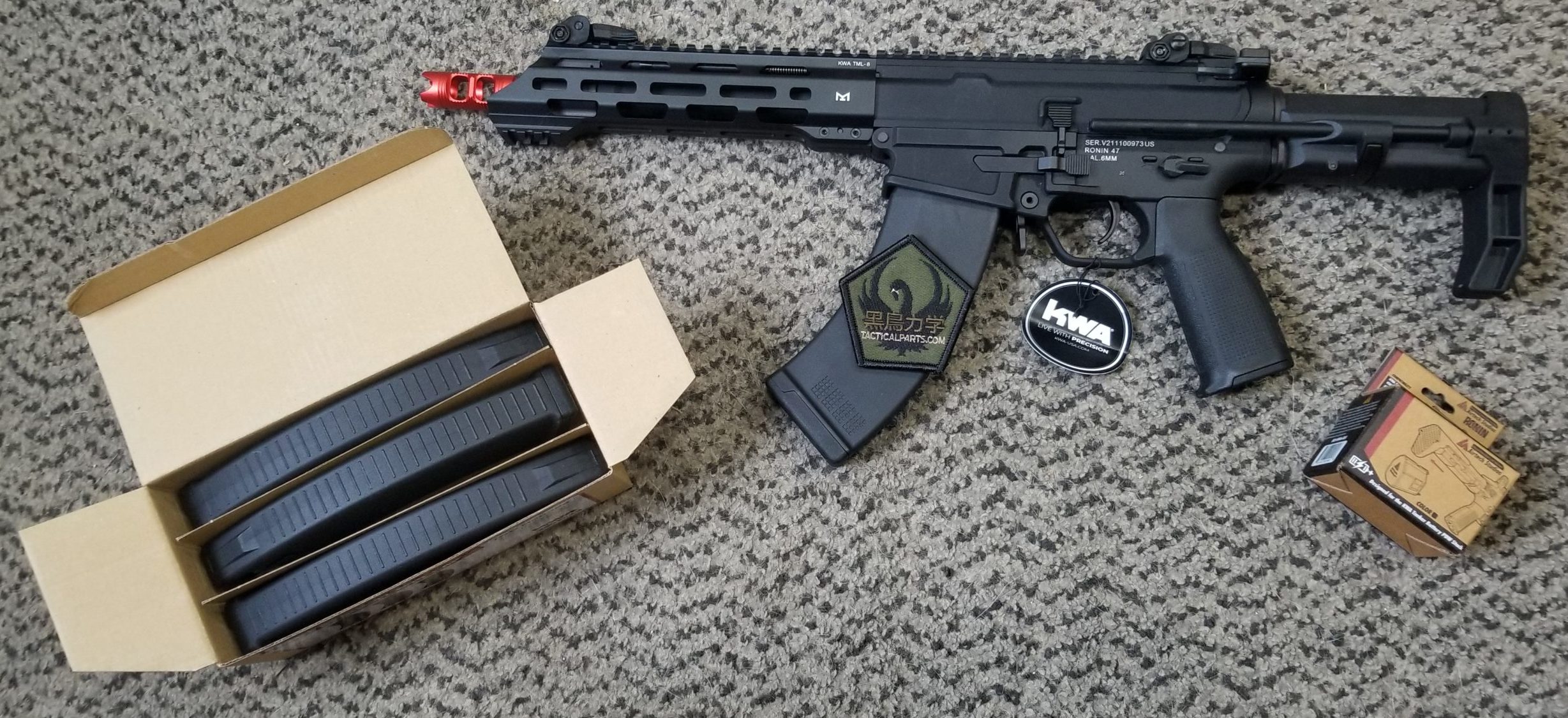 This year’s raffle prize is a KWA Ronin 47 from Tactical Parts! We’re throwing in a 3-pack of midcap mags, a Tactical Parts morale patch, and an Airtech Studios Battery Extension Unit so you can fit a bigger battery inside the Ronin 47 – a prize package worth over $460!